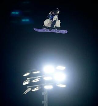 女子ビッグエア決勝 ジャンプする岩渕麗楽=リビーニョ(共同)