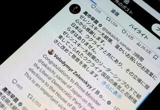 衆院選での自民党圧勝を受けた、各国首脳からの祝辞に対する謝意が投稿された高市首相のX(旧ツイッター)