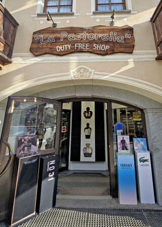 イタリア・リビーニョの「DUTY FREE」と表示された店の看板=2日(共同)