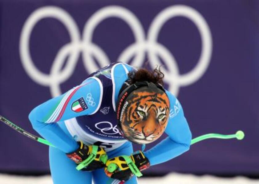 アルペンスキーの女子スーパー大回転で優勝したフェデリカ・ブリニョネ=12日、コルティナダンペッツォ(ロイター=共同)