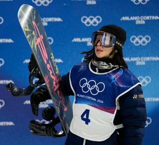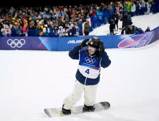 男子ハーフパイプ決勝2回目を終えた平野歩夢=リビーニョ(共同)