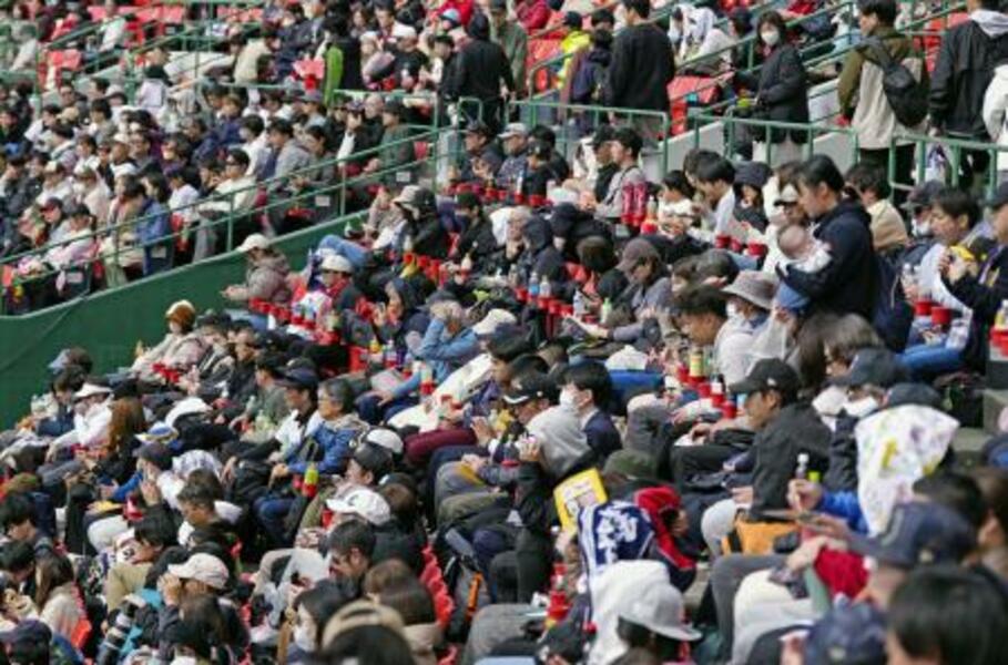 WBC日本代表の練習を見つめるスタンドの観客=14日、宮崎市