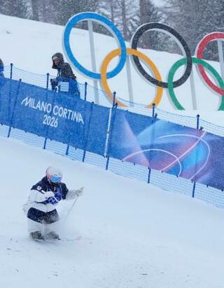 女子デュアルモーグル1回戦 コブを攻め中尾春香=リビーニョ(共同)