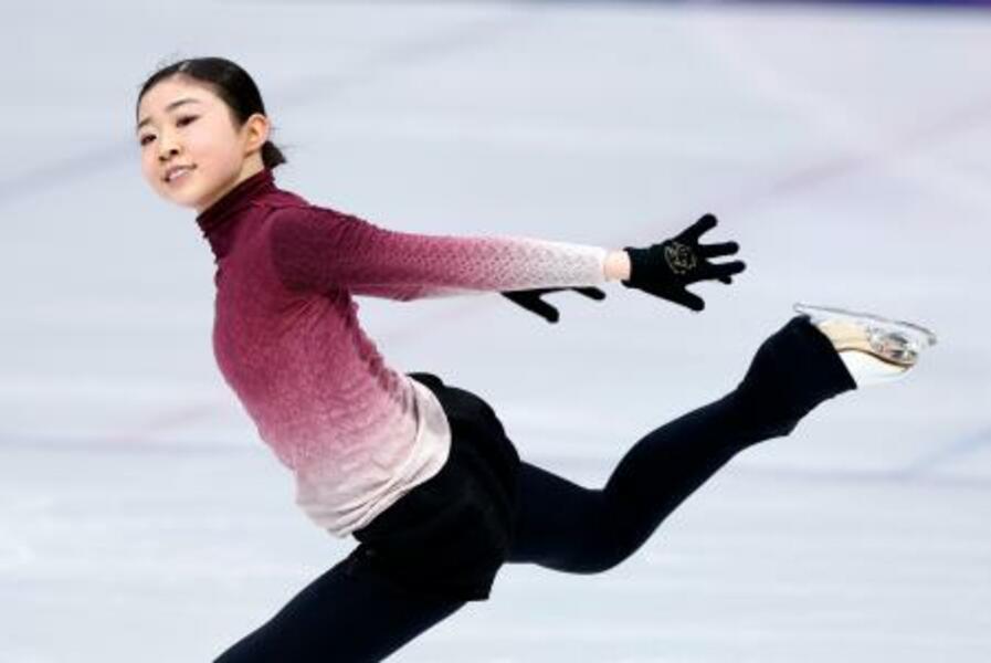 スピードスケート・ショートトラック混合リレー準決勝で、転倒した韓国と米国の選手=10日(ゲッティ=共同)