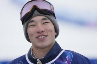 スロープスタイルの練習を終え、取材に応じる木村葵来=リビーニョ(共同)