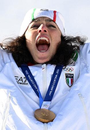 アルペンスキーの女子大回転を制したイタリアのブリニョネ=15日(ロイター=共同)