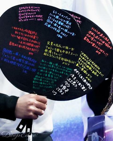 選手が寄せ書きしたうちわ