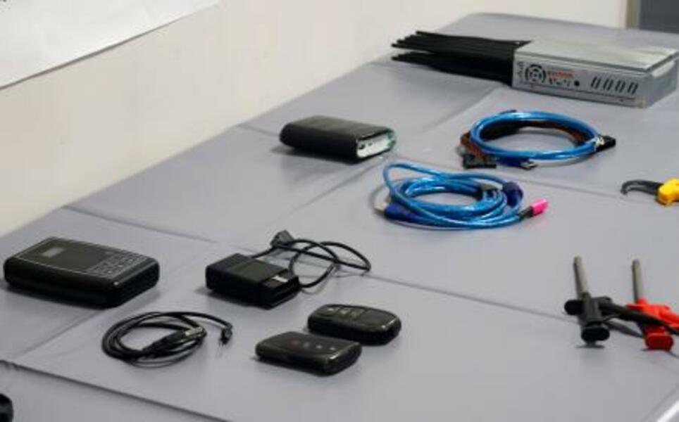 車の窃盗に用いられたとみられる機器=19日午前、警視庁志村署