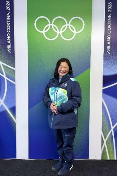ミラノ・コルティナ冬季五輪のボランティア=19日、イタリア・コルティナダンペッツォ(共同)