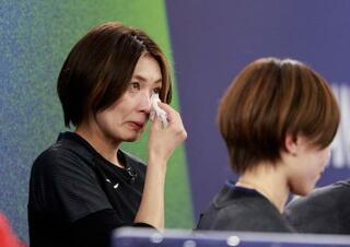 1次リーグ最終戦を終え、涙を拭う吉村=コルティナダンペッツォ(共同)