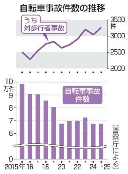 25年の自転車事故、6万7千件
