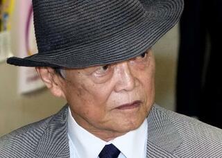 自民党本部を出る麻生元首相=昨年10月、東京・永田町