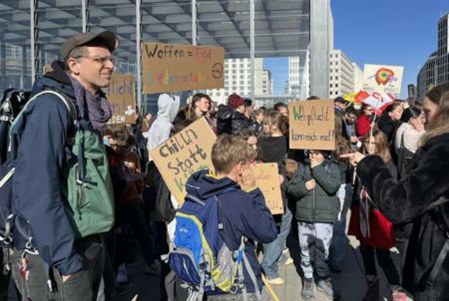ドイツで若者が兵役反対デモ
