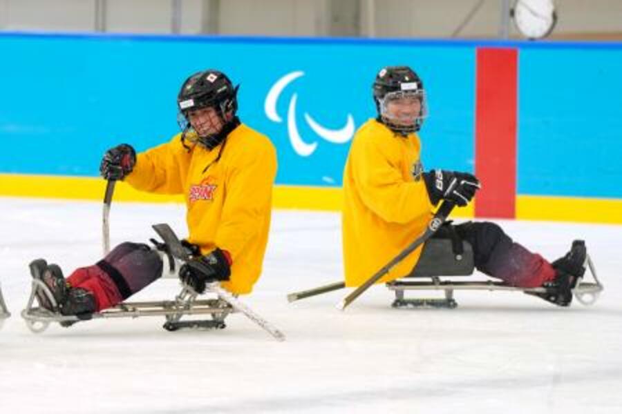 練習し、笑顔の伊藤(左)と石川=ミラノ(共同)