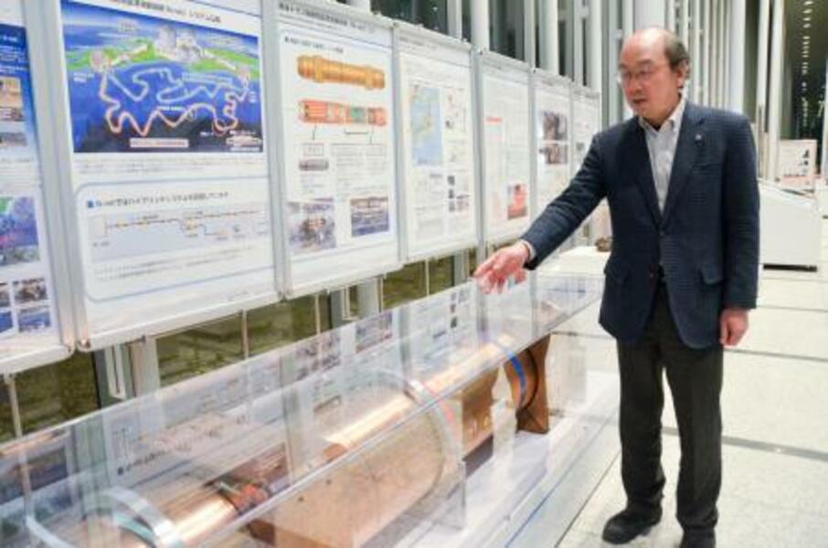海底観測網の仕組みを説明する、防災科学技術研究所の青井真さん=2月、茨城県つくば市