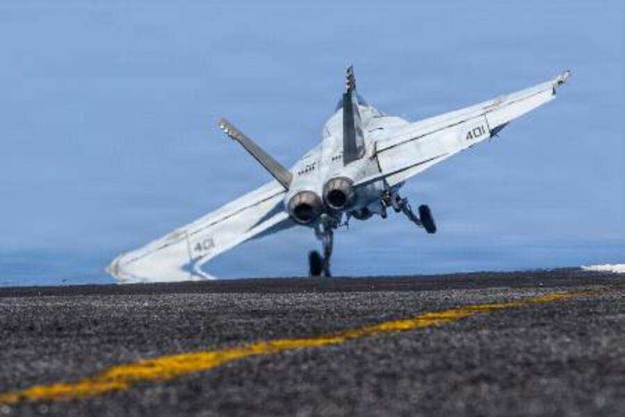 米空母エーブラハム・リンカーンから発艦する米軍機=2日(米中央軍提供、AP=共同)