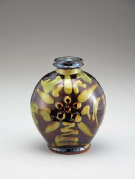 ニューヨークのジャパン・ソサエティー・ギャラリーで展示されている河井寛次郎の「流し描壺」(河井寛次郎記念館提供・共同)
