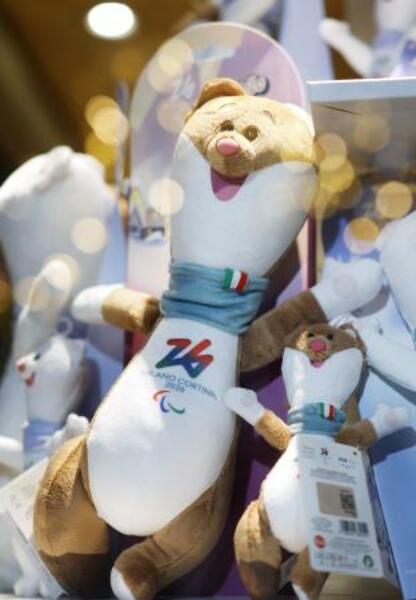 ミラノ・コルティナ冬季パラリンピックの大会マスコット「ミロ」のぬいぐるみ=2025年12月、コルティナダンペッツォ(共同)