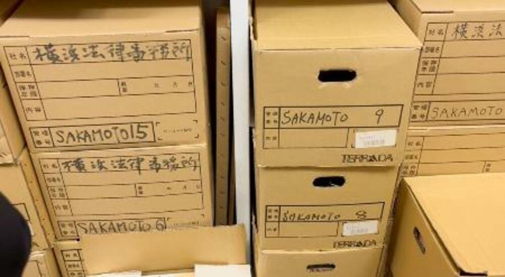 坂本堤弁護士が所属した法律事務所に保管されている、関連資料入りの段ボール箱=2025年6月、横浜市(日弁連提供)