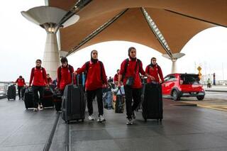 経由地のマレーシアを出国するため、空港に着いたイランのサッカー女子代表選手団=16日、クアラルンプール(ロイター=共同)