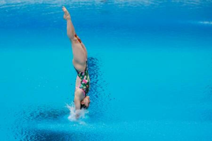 女子高飛び込み決勝 優勝した金戸凜の演技=東京アクアティクスセンター