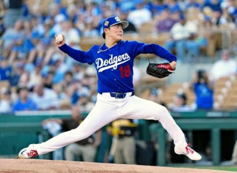 パドレス戦に先発したドジャース・山本=グレンデール(共同)
