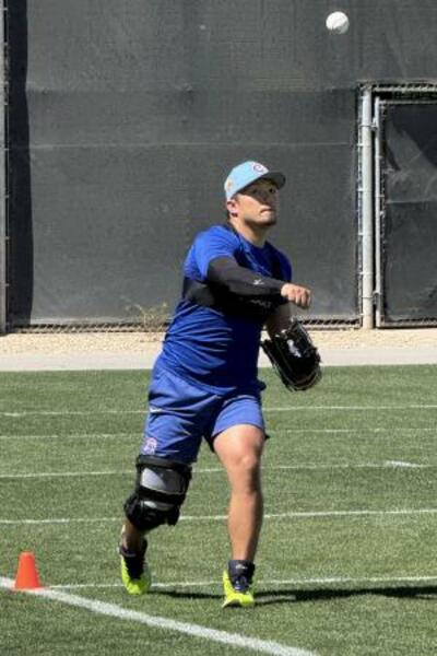 キャッチボールするカブス・鈴木=21日、メサ