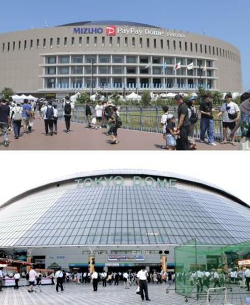 みずほペイペイドーム(上)と東京ドーム