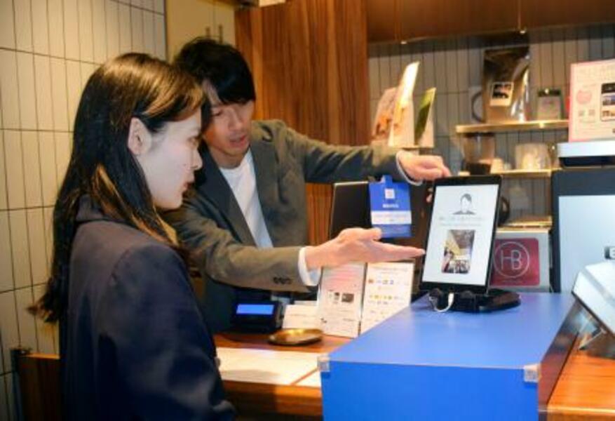 NECが報道陣に公開した顔認証技術を使った決済サービス=6日午前、東京都港区の「麻布台ヒルズカフェ」