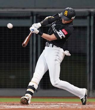 7回ソフトバンク1死一塁、周東が右越えに2ランを放つ=エスコンフィールド
