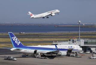 全日本空輸と日本航空の旅客機=12日、羽田空港