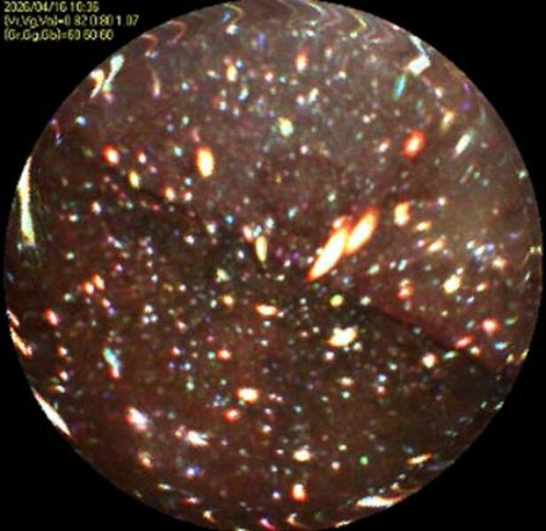 東京電力福島第1原発2号機の原子炉圧力容器に挿入したファイバースコープで撮影した炉心を囲う隔壁(シュラウド)の外壁=16日(東電提供)