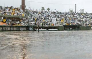 降雨のため2回途中でノーゲームとなったソフトバンク―ロッテ戦=平和リース