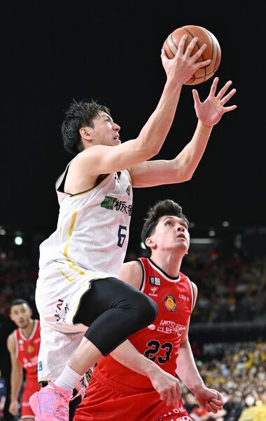 第3クオーター5分、ブレックスの比江島がシュートを決める=IGアリーナ、森田大地撮影