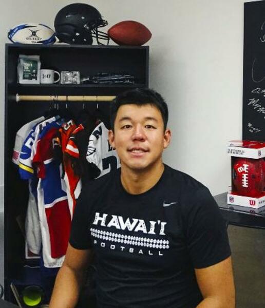 ハワイ大のキッカー松澤寛政=1月、ロサンゼルス近郊(共同)