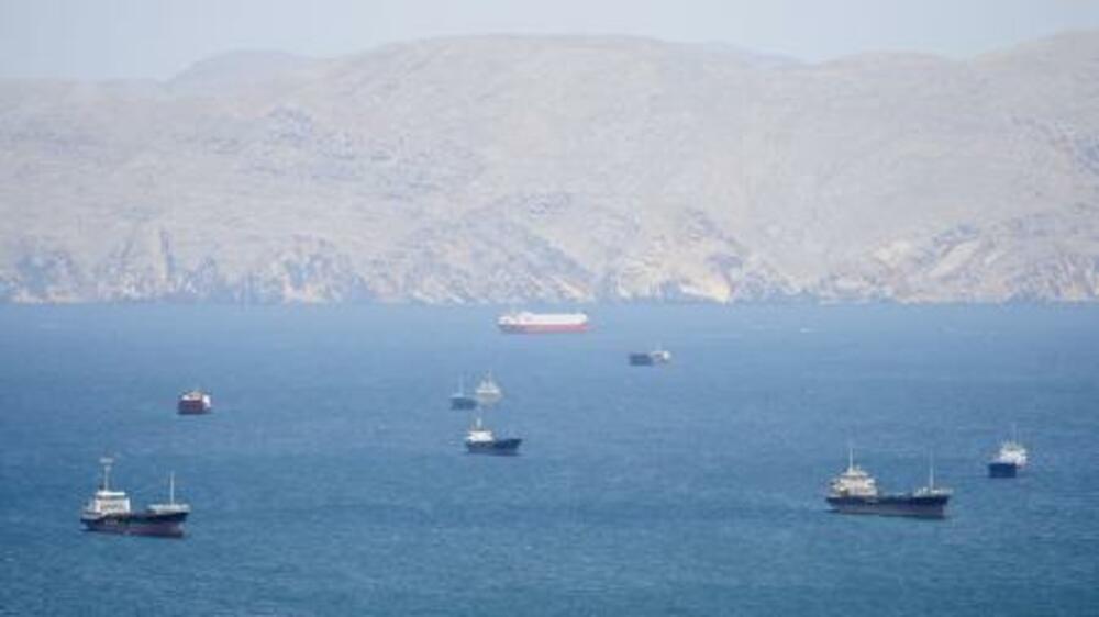 27日、オマーン沖のホルムズ海峡に浮かぶ船舶(ロイター=共同)