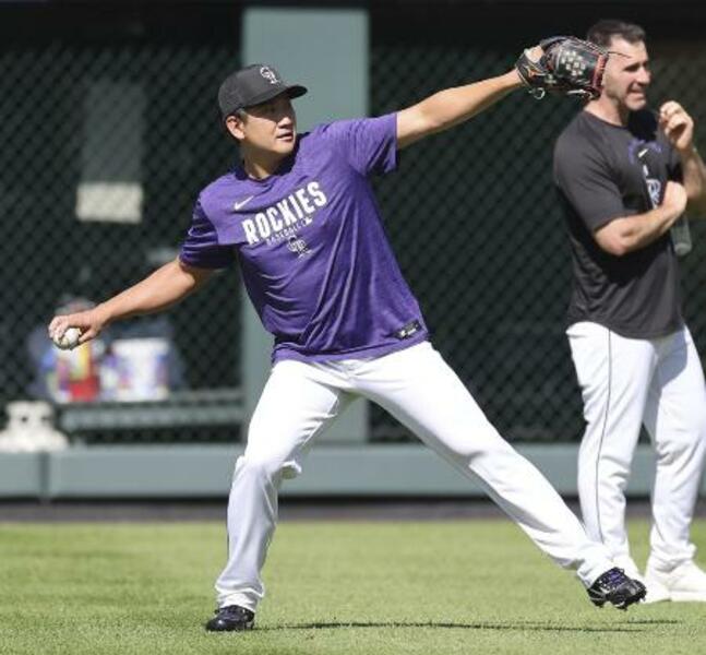 ロッキーズの菅野智之=20日、デンバー(共同)