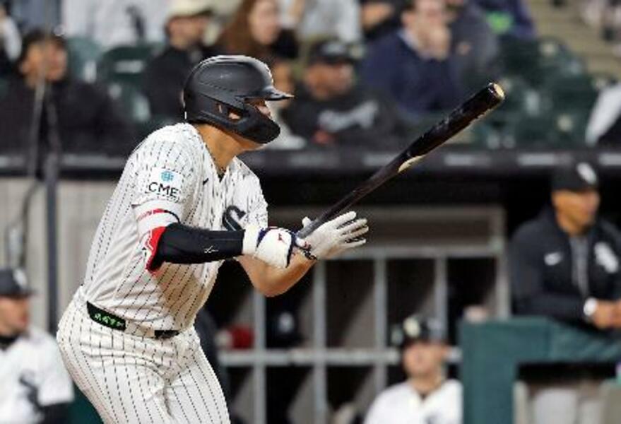 エンゼルス戦の7回、左前打を放つホワイトソックス・村上=シカゴ(共同)