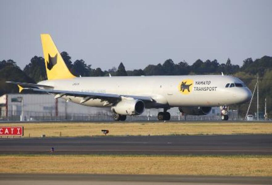 成田空港から離陸する、ヤマトHDと日本航空グループが就航させた貨物専用機=2024年