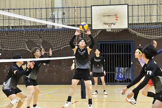 開幕に向けて練習するレーヴィスの選手たち=足大付高体育館
