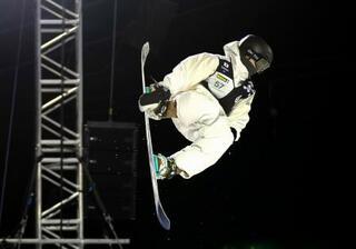 決勝トーナメントに進んだスノーボード男子ハーフパイプの山田琉聖=ラークス(共同)