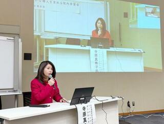 日弁連が国会内で開いた院内学習会で話す寺原真希子弁護士=29日午後、国会