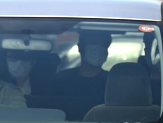 送検される県議の小林達也容疑者(中央)=26日午前8時40分、那須塩原署