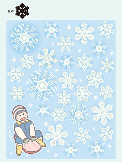 雪の一粒一粒は、実はとても美しい形をしています。手にとって目を凝らして見てごらん。ほら、まるで宝石のようです。 では問題です。見本のシルエットと同じ形の結晶は幾つあるでしょう?