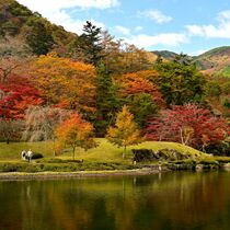 池のほとりを彩る紅葉 鹿沼・古峯神社で見頃