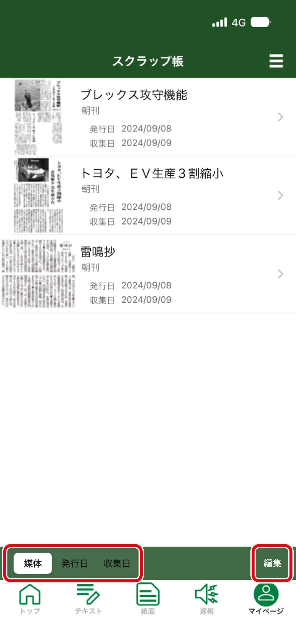 - 切り抜いた記事は「マイページ」に保存されます。「媒体」「発行日」「収集日」で自動的に整理されます。マイページのデータはお使いの端末に保存されます。 ※端末の紛失、故障などの際はマイページのデータは復元できませんので予めご了承ください。
