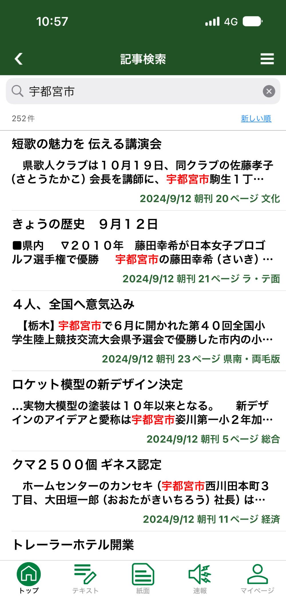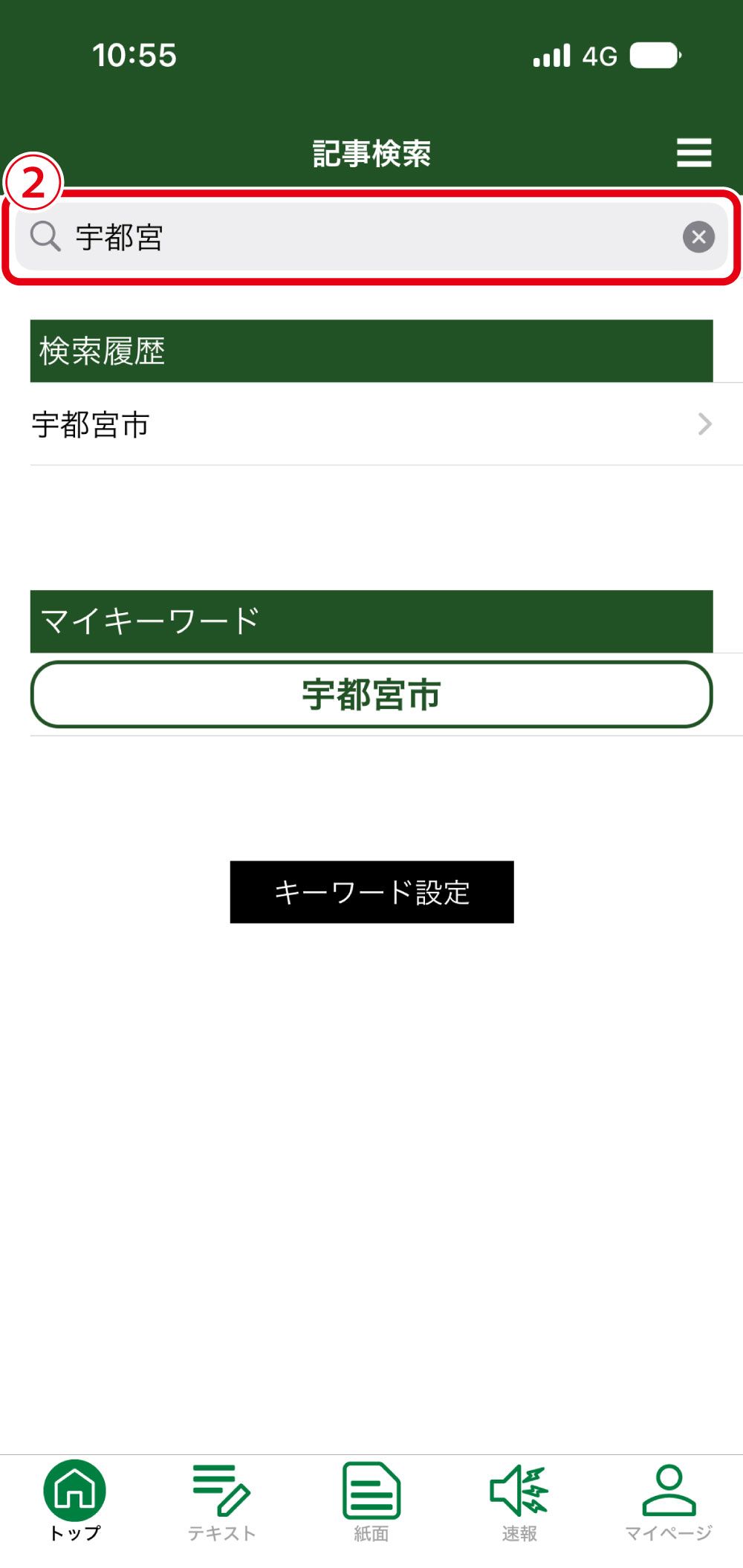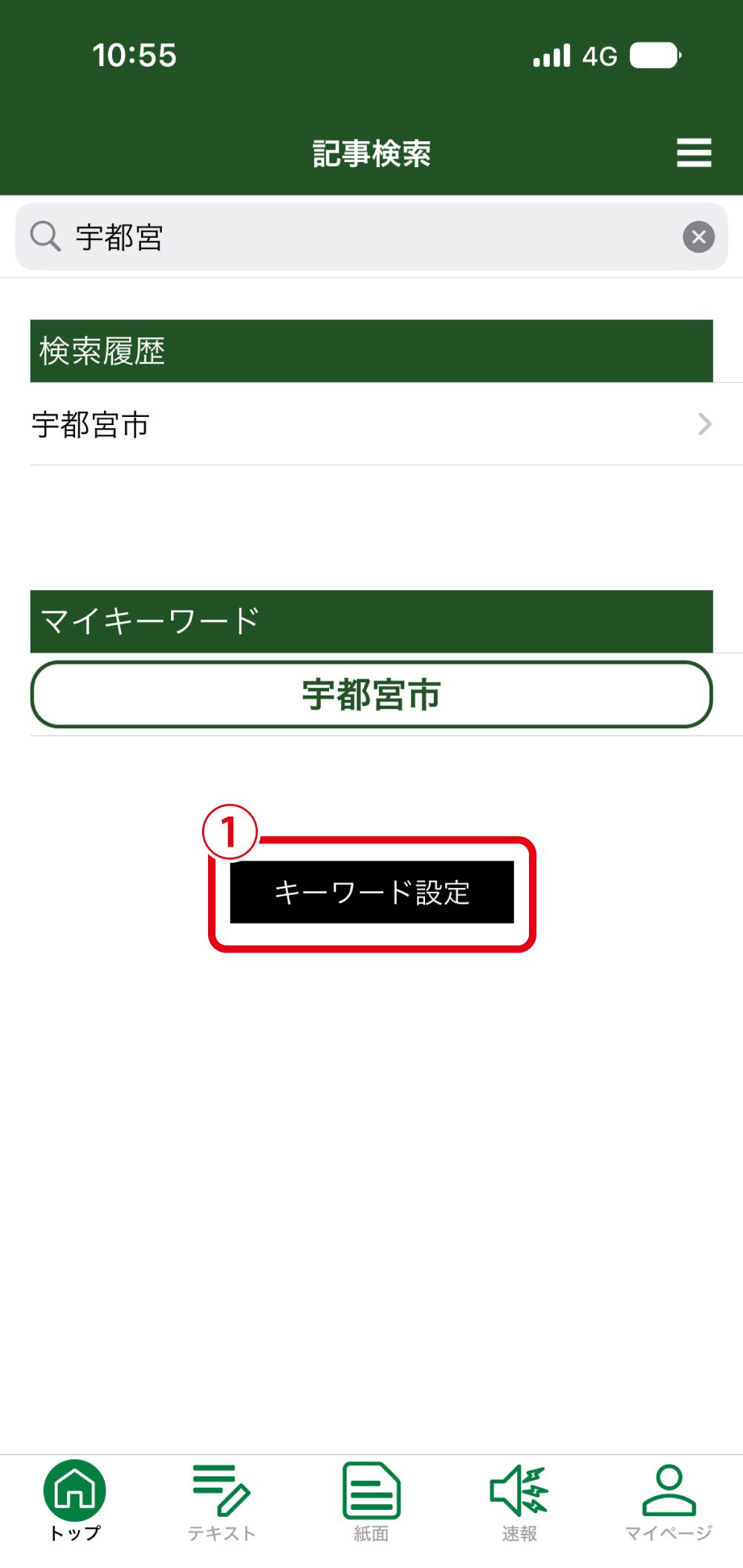 よく使う検索ワードは登録できます。「宇都宮」とキーワードを登録しておけば、ここをクリックすることで毎日「宇都宮」が含まれた記事をチェックできます。