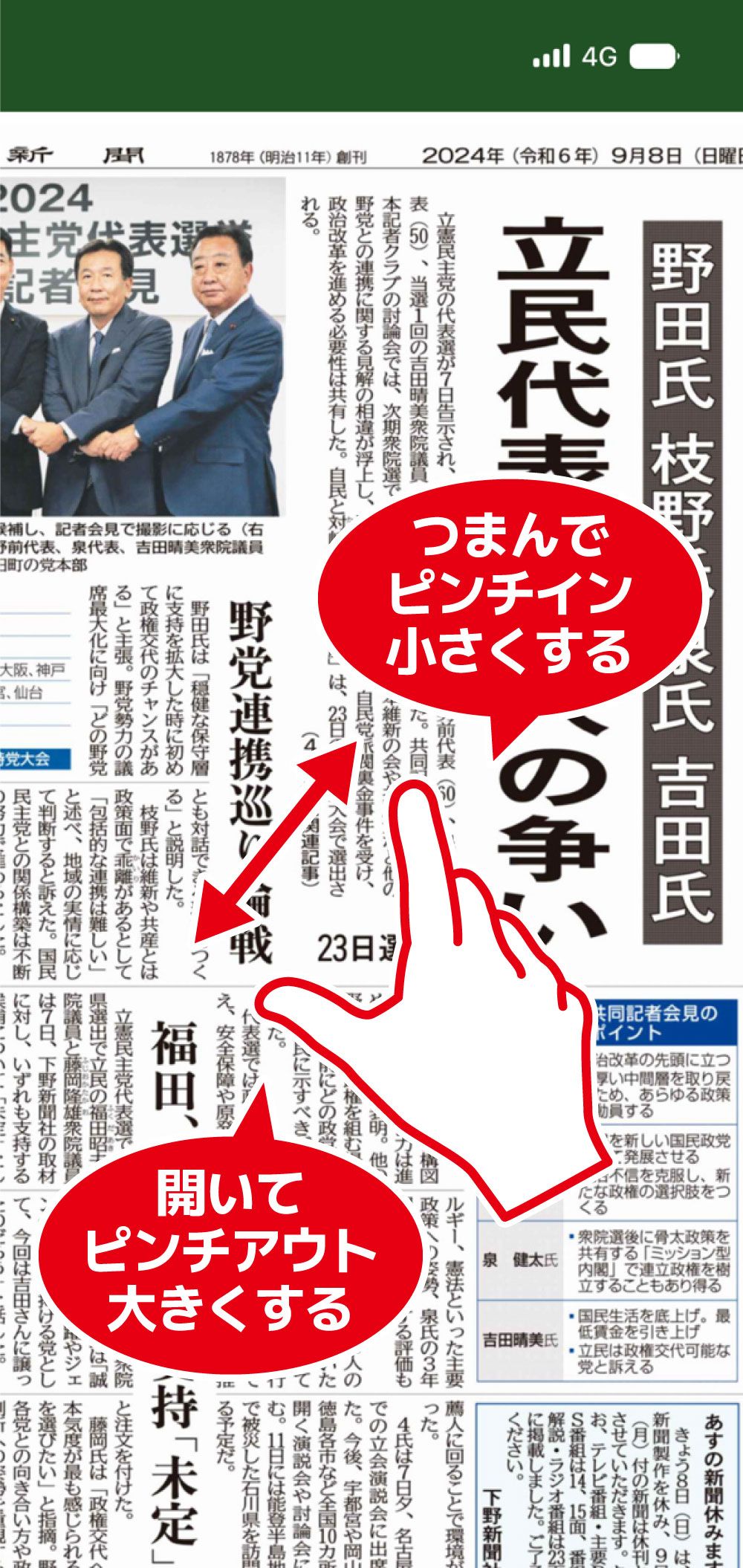 紙面をピンチイン/アウトすることで、紙面を拡大・縮小することができます。