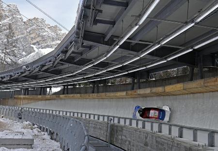 コルティナダンペッツォで行われたボブスレーのミラノ・コルティナ冬季五輪テスト大会=2025年11月(共同)