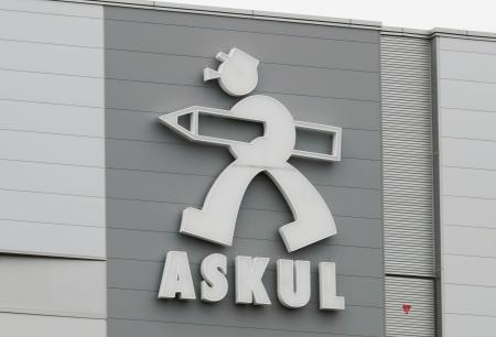 アスクルの物流センターにあるロゴマーク=東京都江戸川区